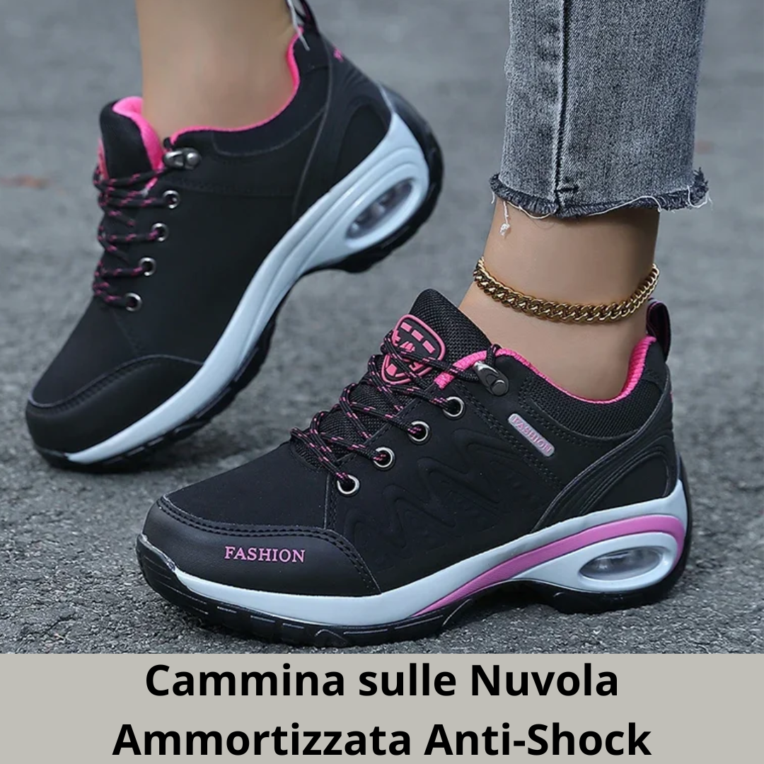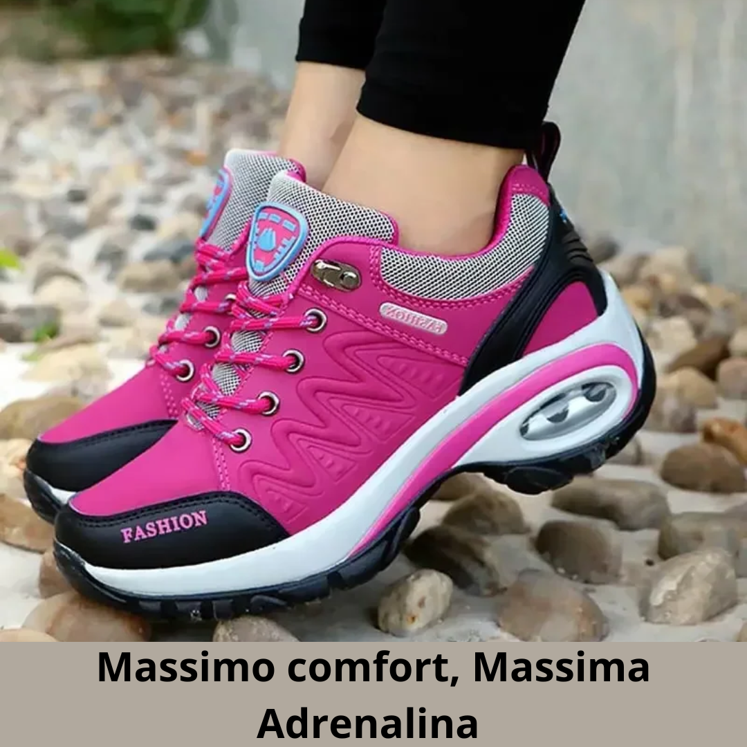 Il massimo del comfort anti-shock .Intersuola con cuscinetto d'aria visibile che assorbe l'impatto.Ideale per lunghe camminata o fitness.Unisce tecnologia avanzata e design vivace di tendenza.